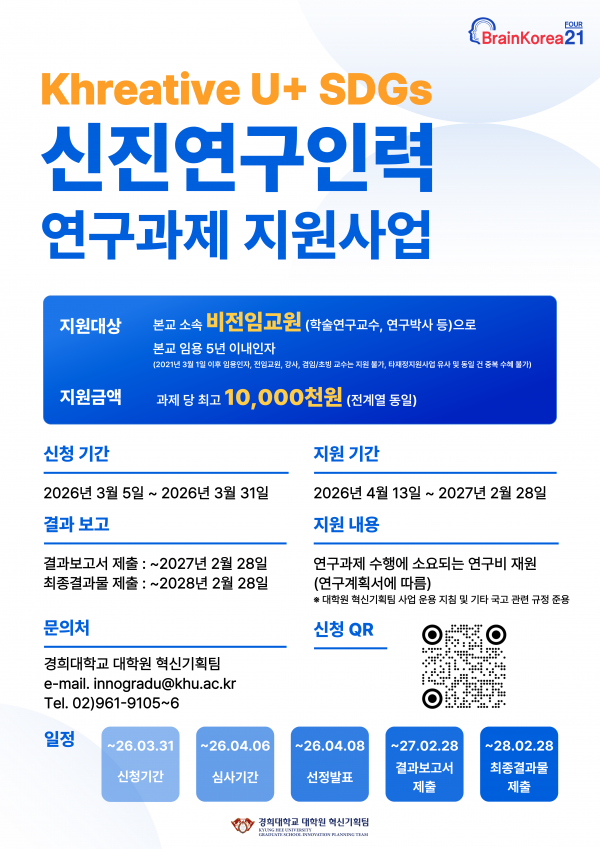 2026 Khreative U+ SDGs 신진연구인력 연구과제 공모(~3/31)