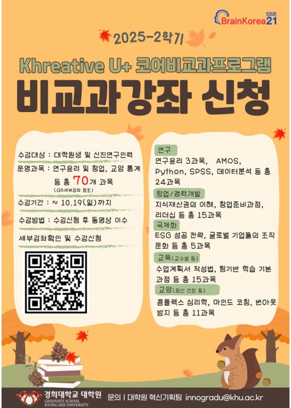 [대학원혁신] 2025-2학기 Khreative U+ CCD 코어 비교과 프로그램 개설/운영 안내