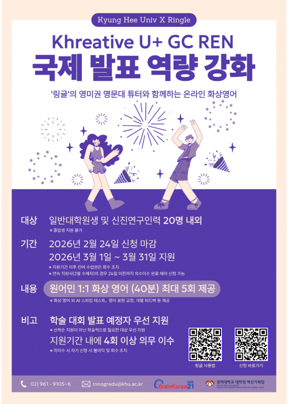 [대학원혁신] Khreative U+ GC REN : 국제 발표 역량 강화 3월 모집