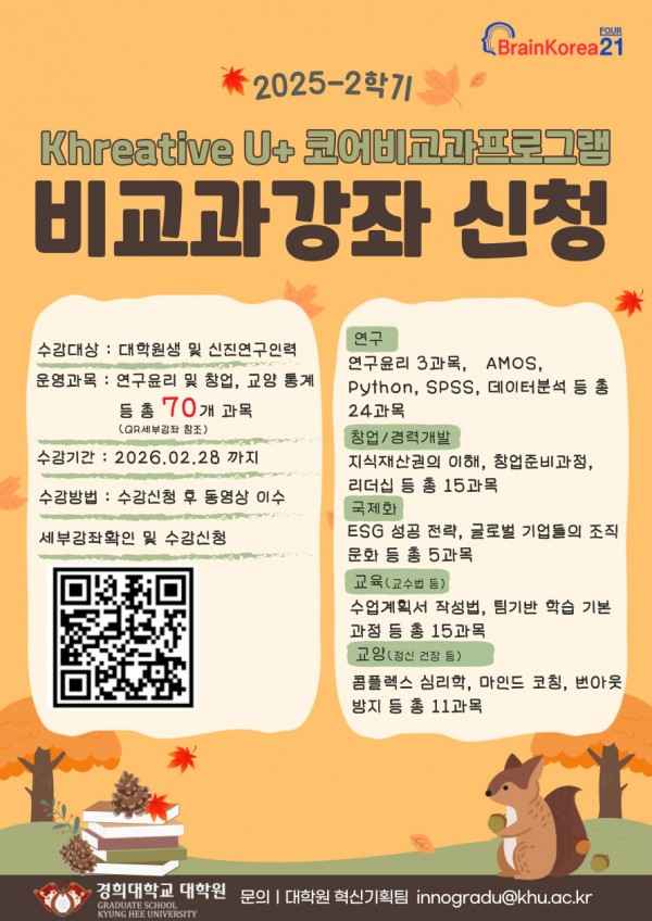 [대학원혁신] 2025-2학기 Khreative U+ CCD 코어 비교과 프로그램 개설/운영 안내
