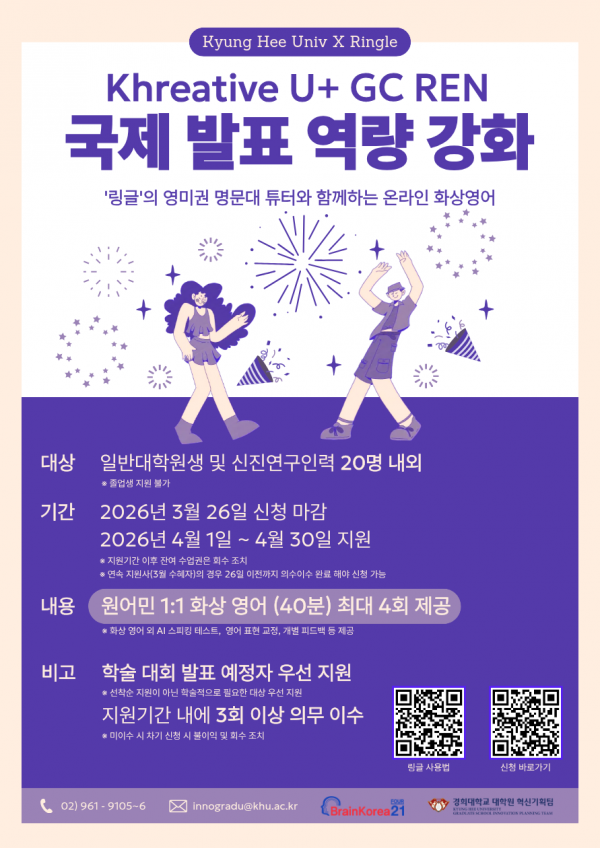 [대학원혁신] Khreative U+ GC REN : 국제 발표 역량 강화 4월 모집
